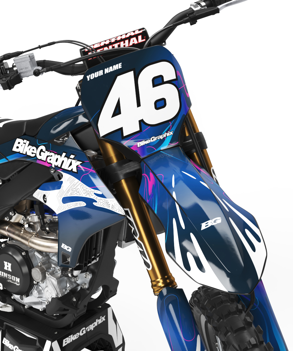 All Semi Custom Dirt Bike Graphics can be built as a full kit, shrouds only, or trim kit only.  You can also add matching number plate backgrounds and a custom seat cover.